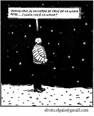 Imagina que tuvieras unos brazos gigantescos para poder arrancar el cielo, la tierra, el mar, los seres vivos, nuestro planeta, todos planetas, las estrellas, nuestra galaxia, todas las galaxias… para después, dejarlo caer todo a través de un agujero hacia ninguna parte, y hecho esto, desaparecer tú con el propio agujero, y así no existir absolutamente nada, ni siquiera una conciencia que pudiera dar fe de lo acontecido. O mejor aún, imagínate que jamás ha existido algo, ni siquiera el silencio o la oscuridad o la ausencia de algo… pensar en la posibilidad de la “existencia” de la “no existencia” de Nada, es un absurdo. Sin embargo, estamos aquí, así que, o existe la Nada y nosotros a la vez, o existió la Nada y ya no porque existimos nosotros, o nunca existió la Nada.